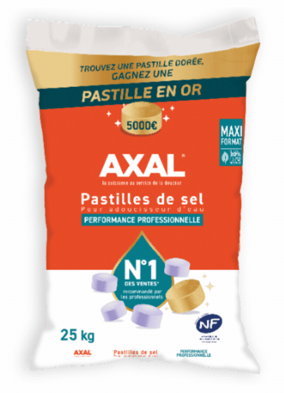 Dès votre premier ticket de caisse téléchargé, vous recevez un bon de réduction de 2€* pour découvrir l’innovation AXAL : les blocs de sel pour adoucisseur d’eau, plus pratiques, plus simples à utiliser et aussi performants.
